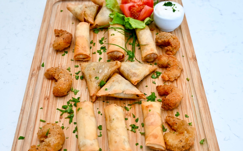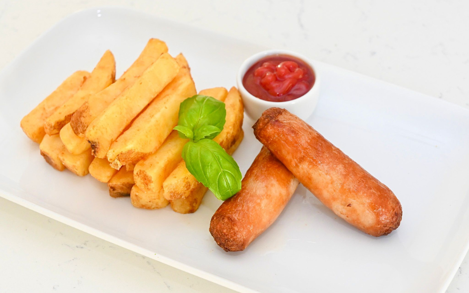 • 4 cocktail sausage, 3 Goujons, Wedges per child